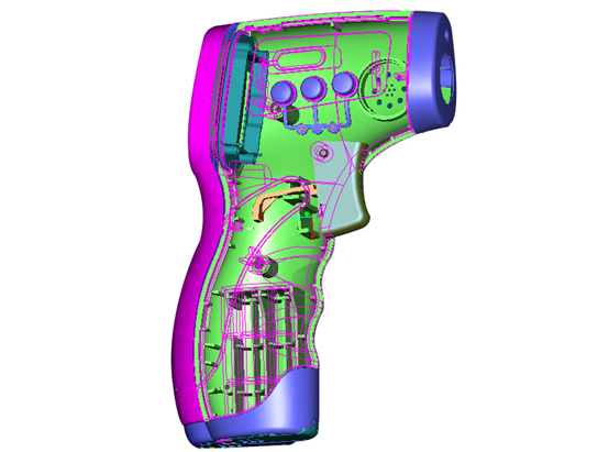 隨著世界疫情的的持續(xù)擴散,電子體溫槍的需求不斷再加大。一款好的電子體溫槍模具設計應該注意那些細節(jié)呢,體溫槍外殼注塑又有那些技術(shù)要求呢,科翔模具就這個話題來討論一下。