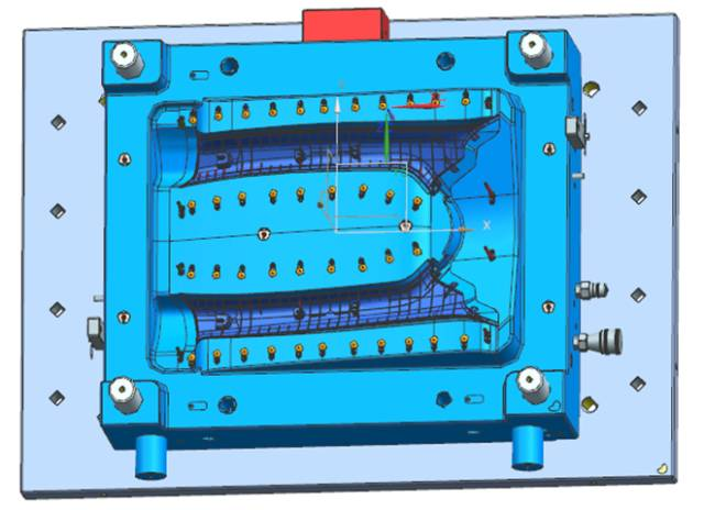 在汽車注塑模具中,針對(duì)汽車保險(xiǎn)杠產(chǎn)品,模具設(shè)計(jì)時(shí)通常會(huì)采用先進(jìn)的內(nèi)分型面技術(shù)。其優(yōu)點(diǎn)是分型夾線隱藏在保險(xiǎn)杠的非外觀面上,在汽車上裝配后看不到外觀夾線,不會(huì)影響產(chǎn)品外觀。但這種技術(shù)在難度與結(jié)構(gòu)上都要比外分型保險(xiǎn)杠復(fù)雜,技術(shù)風(fēng)險(xiǎn)也較高,模具成本與模具價(jià)格也會(huì)高于外分型保險(xiǎn)杠很多,但因外觀美觀,在中高檔汽車中被廣泛應(yīng)用。